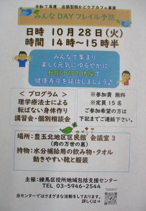 また、10月28日には理学療法士による、転ばない体づくりの講習会・個別相談を実施予定です。
