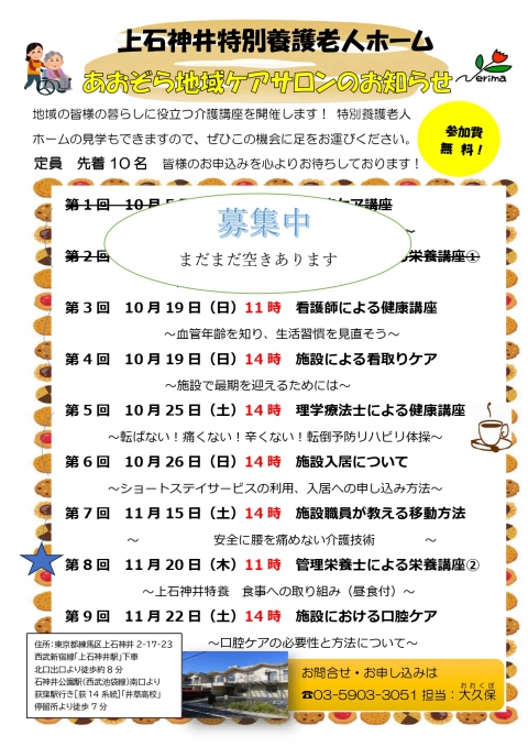 第3回の健康講座、第4回の施設での看取りケアの開催も間近と迫っています。