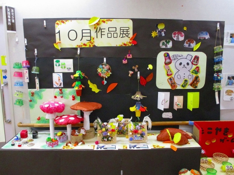 というわけで、関町デイではデイルーム 入口付近で作品展を絶賛展示中です。 皆さまが一生懸命作った作品たちを ぜひご覧あれ!!