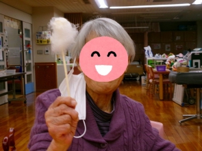 先日の関町デイは、縁日さながら射的、ゲーム大会、 その後はわたあめづくりを行いました。 「射的なんて何十年ぶりかしら」「わたあめ作るのなんて初めてよ」 と、ドキドキわくわくの小一時間でした。ご自身で作られた わたあめはお店のより小ぶりですが、上手にできましたね♪