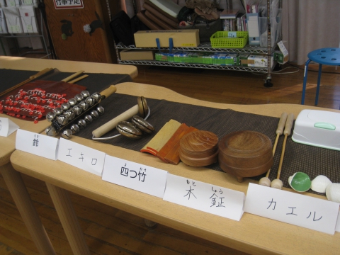 ボランティアの方々が見たことあるようであまりない、様々な種類の和楽器を持参して下さっています。