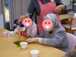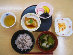 お昼ご飯はお正月らしく縁起ものの紅白なますやお赤飯を召し上がっていただきました。