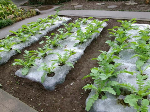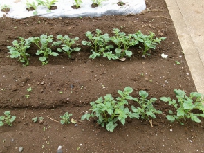 種から大根の芽が出てきて順調に育っています 芽がでた「じゃがいも」を植えた所からも葉っぱがでてきて一安心しました