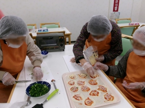 選択活動の一つとして調理クラブで「しらすと魚肉ソーセージのミニピザ」