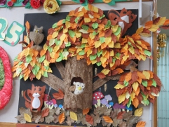 当デイルーム入り口には お客様と職員で作った 力作が展示されています。 リス、みみずく、フクロウ などかわいい動物がお出迎え、 よく見るとミノムシもいます。 お客様より、 「ミミズクかわいいね」 「リスもかわいいよ」...