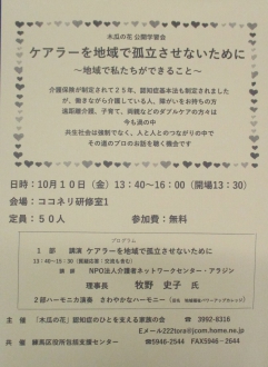 こんにちは。練馬区役所地域包括支援センターです♪ 涼しい秋風に、高く澄んだ空。大きく深呼吸したくなるような、気持ちの良い季節になってきましたね。 10月はたくさんの催し物が開催されます。 10月10日、木瓜の花の公開学習が行わ...
