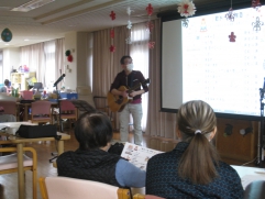 本日はボランティアの草地さんに来ていただきました! ギターの演奏と一緒に皆さんと一緒に歌を歌われています。 懐かしの唱歌や歌謡曲など、季節の曲があり、「懐かしい」と仰られ皆様気持ちよさそうに歌を歌われていました。 2月、3月も...