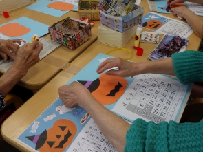 こんにちは(^^)/ 9月の選択活動は、 ブドウの壁飾り作り ハロウィンのカレンダー作り でした!(^^)! 見本を見ながら作られ ブドウの配色を考えたり 「このオバケ、かわいいね♡」など お話も楽しみながら行っていました(^_-)-☆ 10月の選択活動もお楽しみに(*^-^*)