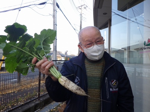 9月下旬にお客様と一緒に種まきをした ミニ大根を11/15に収穫しました!(^^)! 野菜作り初挑戦!ということで 無事に収穫できるか心配でしたが・・・ かわいい♡ ミニ大根が収穫できました(^_^)v 収穫したミニ大根は 厨房の方に、大根のお味噌汁を作っていただき 昼食時にお客様に召し上がっていただきました! もうすぐ、ミニ紅大根も収穫できそうです☆彡 お楽しみに(*^-^*)