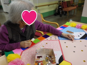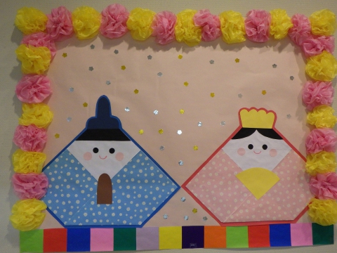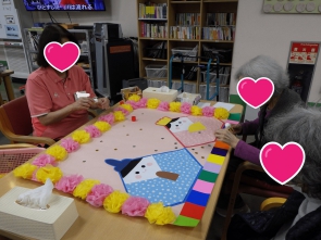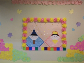 こんにちは(^o^) 節分が終わり、 次は『ひな祭り』!(^^)! お帰り前の時間に お客様に協力していただき 沢山のお花を作ったり、ハサミ作業をして お雛様の壁面が完成しました(^_^)v 完成した壁面を見て お客様・職員は 「かわいいのができたね♡」と 一緒に喜びました(^^♪