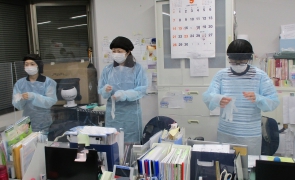 練馬区役所地域包括支援センターでは、感染症対策として、センター内でガウンテクニックの講習会を行いました。