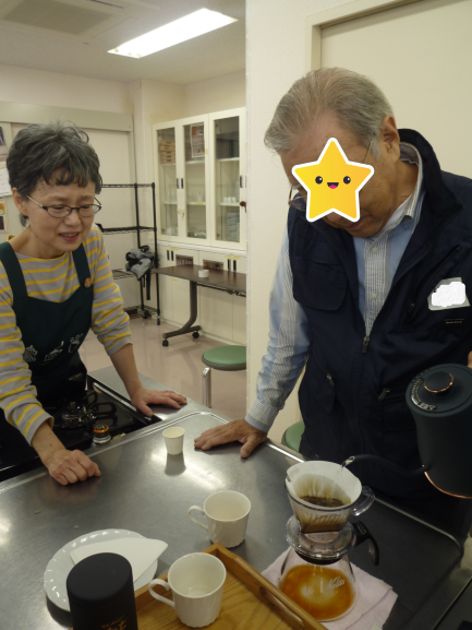 1回目・2回目は珈琲挽売専門店ビーンズアクト店主蜂谷氏から、コーヒーの歴史的背景やハンドドリップでの美味しい淹れ方、またボランティア活動について学び、3回目は実際に、はつらつセンター豊玉にご来館されている方に試飲して頂く機会を持ちました。