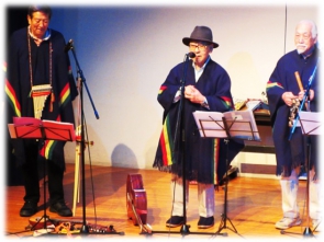練馬区の「はつらつシニア活躍応援塾」を受講した シニアボランティア 「ロス ボラーチョス(Los Borrachos)」の メンバーを迎えて南米の民族楽器が奏でる フォルクローレの陽気な音楽会を開催しました。 当センターでもお馴染で、楽しみにされている方も たくさんいラシャいます。 活躍の場所もどんどん増えているようです。