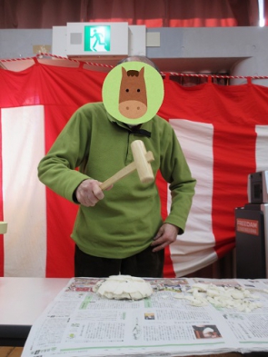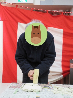 1月12日に昨年お客様が作られた 鏡餅を使い、「鏡開き」を行いました。 来所されたお客様、交代交代で 木槌を持っていただき、 鏡餅を叩いて頂きました。 ・・・が、鏡餅がかなり固く ひびを入れかけさせる のがやっとでしたが、 お客様は割れた餅を見て大喜びでした。