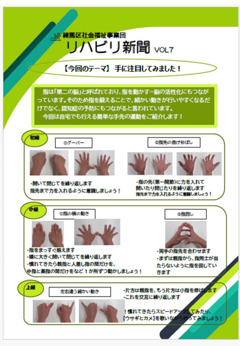 今回第7弾は、【手に注目してみました】について新聞を作成しました。いつでもどこでも行うことができる運動方法をご紹介しています。