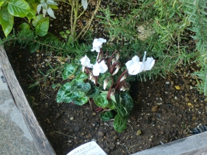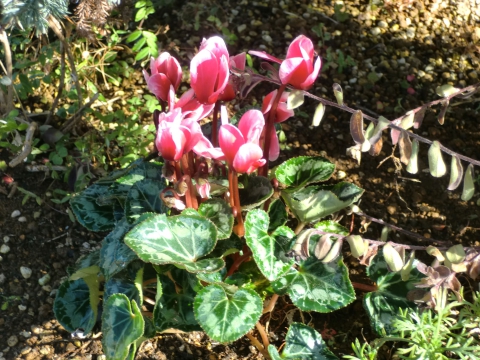 陽だまり緑地と施設前の花壇に、新しくシクラメンを植えました♪