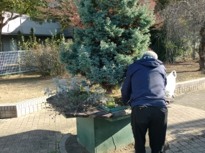 日差しの温かい晴天の、12月23日(火)にお花のボランティアさんが来てくださいました。