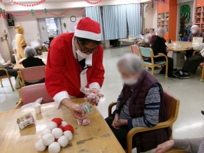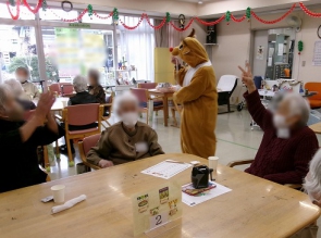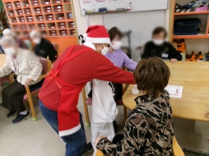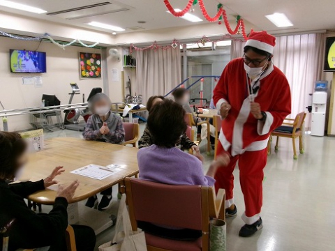 午前中はサンタやトナカイ、雪だるまに変身した職員とゲームをしてたくさん楽しみました。