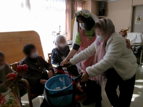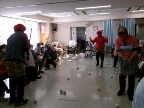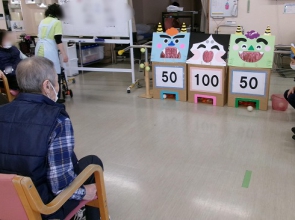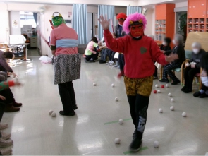 先日、デイサービスで節分イベントを開催しました 職員が鬼に変身! 赤鬼が登場すると、皆さまから笑い声と拍手が。 豆の代わりにお手玉を使い 「お庭外!福は内!」と元気な掛け声とともに鬼にむかってお手玉を投げる表情は とてもいきいきとしていました 最後は鬼も降参し、たくさんの福を呼び込むことができました