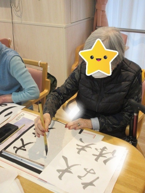 大泉デイでは毎月の大人気活動『書道』を行っています 普段なかなかご自宅では取り組む機会の少ない書道ですが、 筆を持つと自然と背筋が伸び、 皆さまとても真剣な表情で取り組まれます 筆の感触を楽しまれながら、 季節の言葉をお手本に、一文字ずつ丁寧に筆を運ばれ 静かな中にも充実した、心落ち着く活動となっています