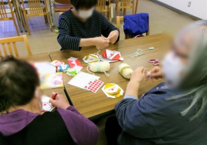 「四葉の会」は、併設の光が丘デイサービスセンターのお客様への 誕生日プレゼントを作るボランティアグループです。 今回は併設の児童館へクリスマスプレゼントを作りました。 子供たちが喜んでくれるといいですね。