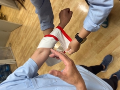 こんにちは 関町居宅介護支援事業所です。 先日、事業所が所属する施設全体で防災訓練がありました。 内容は応急処置訓練(包帯法)でした。 参加者同士で三角巾を使った包帯法を行ってみました。 包帯法の主な目的は①止血 ②固定...