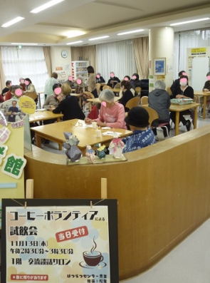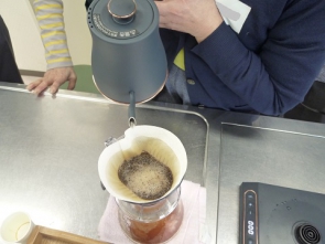 1回目・2回目は珈琲挽売専門店ビーンズアクト店主蜂谷氏から、コーヒーの歴史的背景やハンドドリップでの美味しい淹れ方、またボランティア活動について学び、3回目は実際に、はつらつセンター豊玉にご来館されている方に試飲して頂く機会を持ちました。