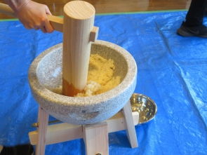 皆様のお力のおかげで、つきたての良く伸びるお餅が完成!!