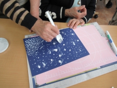 絵心いらずの脳いきいきアートは、自由な発想さえあれば、すべての作品がまさにアートとして輝きます。 ですので、脳はフル回転ですね。 今回の作品は、①色画用紙に修正ペンで点々と「雪」を降らせていきます。フォークで引っかいたり、水でにじ...