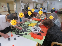 やっと涼しくなり、虫の声があちこちで聴こえて秋を感じますね。 以前壁画作品作成中のご様子をご紹介させていただきましたが、完成した作品がこちらです! 9月は敬老会がありましたので、鶴と扇子が舞ってお祝いさせていただきました(^^♪ ...