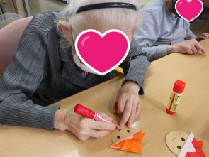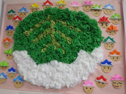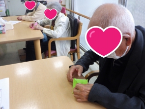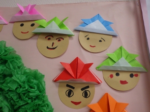 こんにちは\(^o^)/ 4月の壁面制作を行いました! お花紙で大きな柏餅を作り 折り紙で兜を折りました!(^^)! お客様と一緒に職員も 「兜はどうやって折るんだっけ?」と 折り方の説明を見ながら何とか完成! カラフルな兜が沢山できました(^^)v 兜の顔は、お客様が描いてくださってます! かわいい表情ですね(*^-^*)
