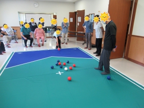 この地域で長年ボッチャの啓もう活動を行ってらっしゃる方にわかりやすく解説していただきながら、なごみの会ならではのスポーツの秋を味わいました。