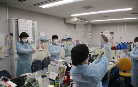 練馬区役所地域包括支援センターでは、感染症対策として、センター内でガウンテクニックの講習会を行いました。