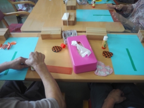 各パーツを貼りつけるという作業工程は簡単でしたが、各パーツ選んで貼っていただいたので1つとして同じ作品はなく出来上がりが楽しみでした。