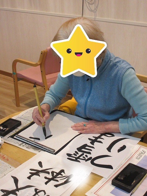 大泉デイでは毎月の大人気活動『書道』を行っています 普段なかなかご自宅では取り組む機会の少ない書道ですが、 筆を持つと自然と背筋が伸び、 皆さまとても真剣な表情で取り組まれます 筆の感触を楽しまれながら、 季節の言葉をお手本に、一文字ずつ丁寧に筆を運ばれ 静かな中にも充実した、心落ち着く活動となっています