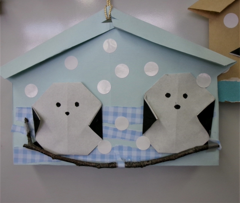 先日、「季節の折紙教室」を開催しました。 前回に引き続き絵馬を封筒で作成し折紙でシマエナガを作りました。 ふっくらとした可愛らしいシマエナガに目と口を描きそれぞれの表情の違いが楽しめます。 素敵な作品が完成しました。